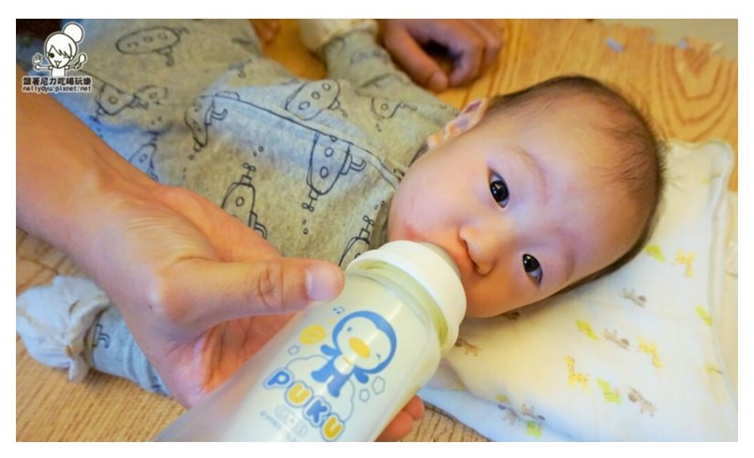 PUKU的防脹氣奶瓶好好用,丁寶喝的很OK