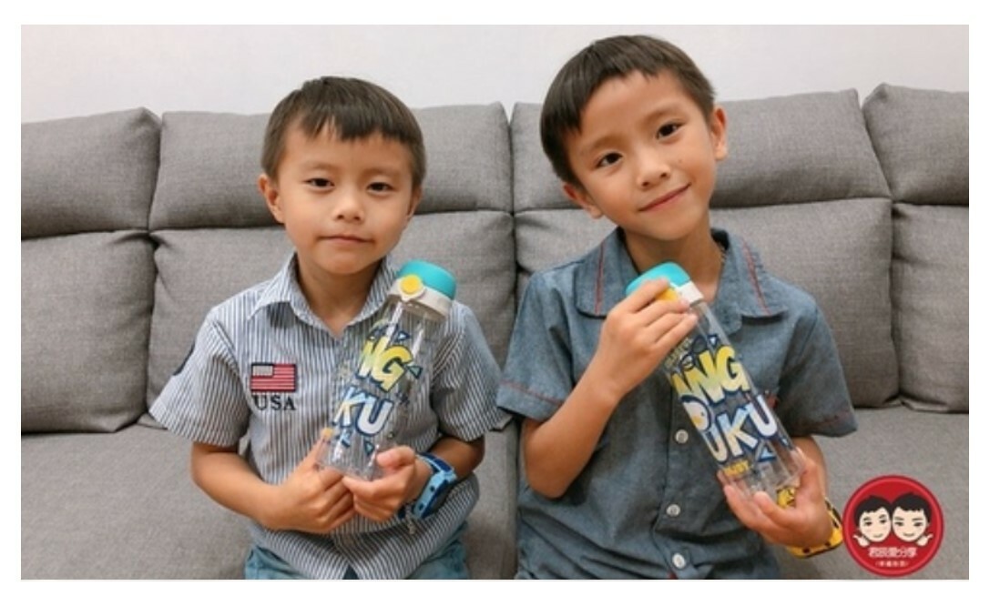 君君辰辰一口接著一口喝,說水壺好可愛呦!