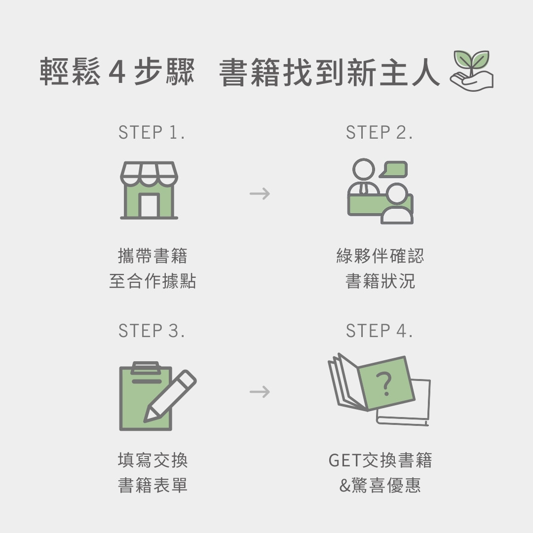 請攜帶 1 本書籍至綠夥伴合作據點交換。