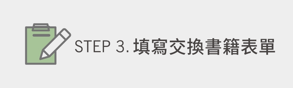 選取好欲交換的繪本後,請至櫃台通知綠繪本夥伴並填寫表單登記。