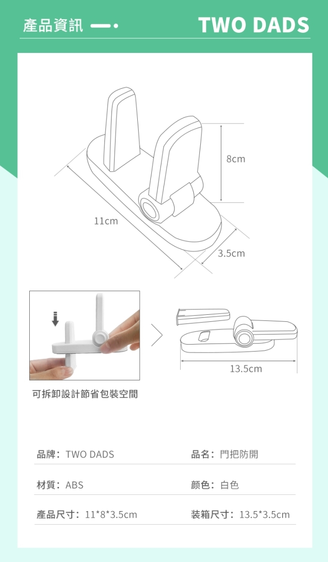 | 商品品名:門把防開安全扣2入 商品型號:J151082 商品特點: