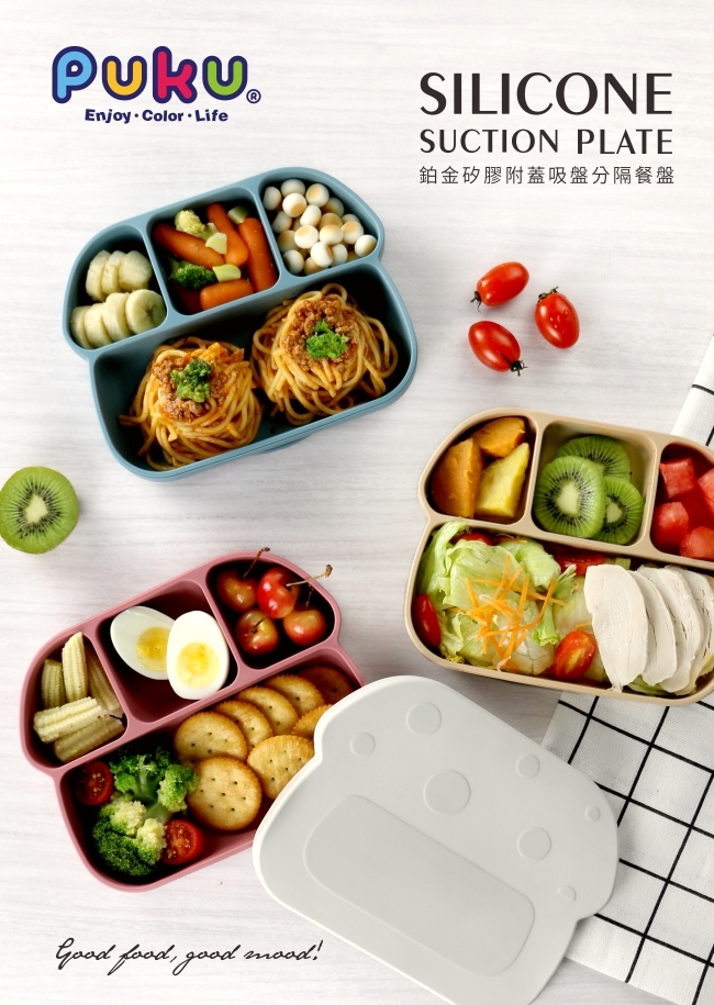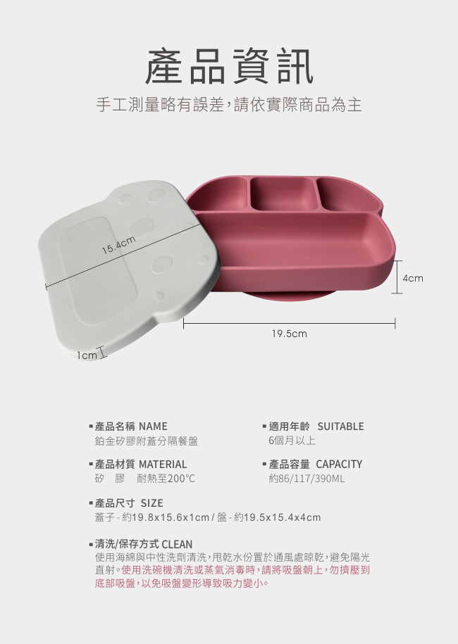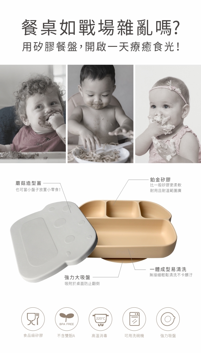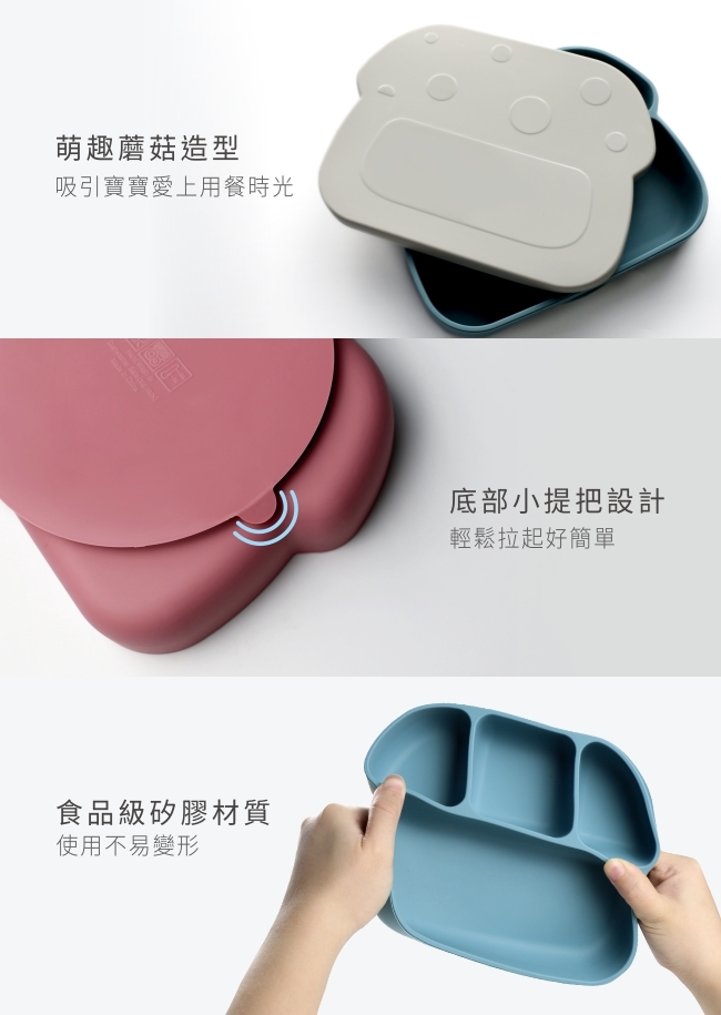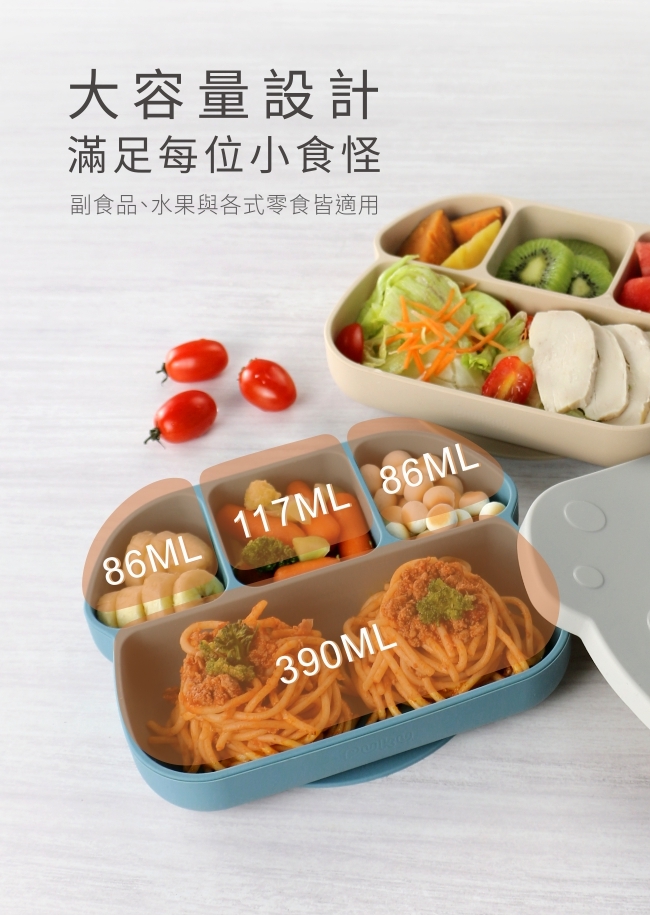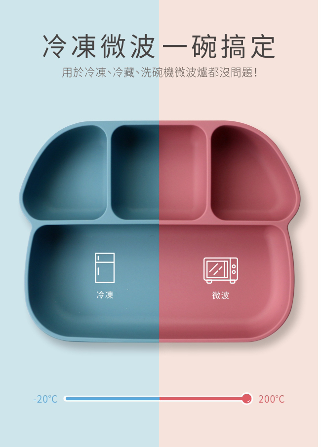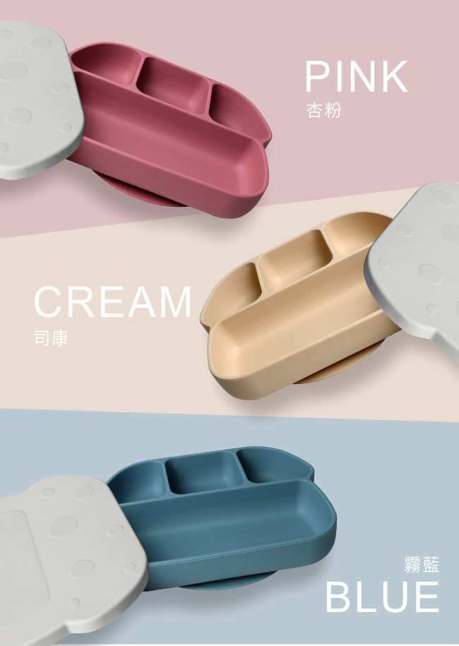 ▪ 鉑金矽膠附蓋吸盤分隔餐盤*1