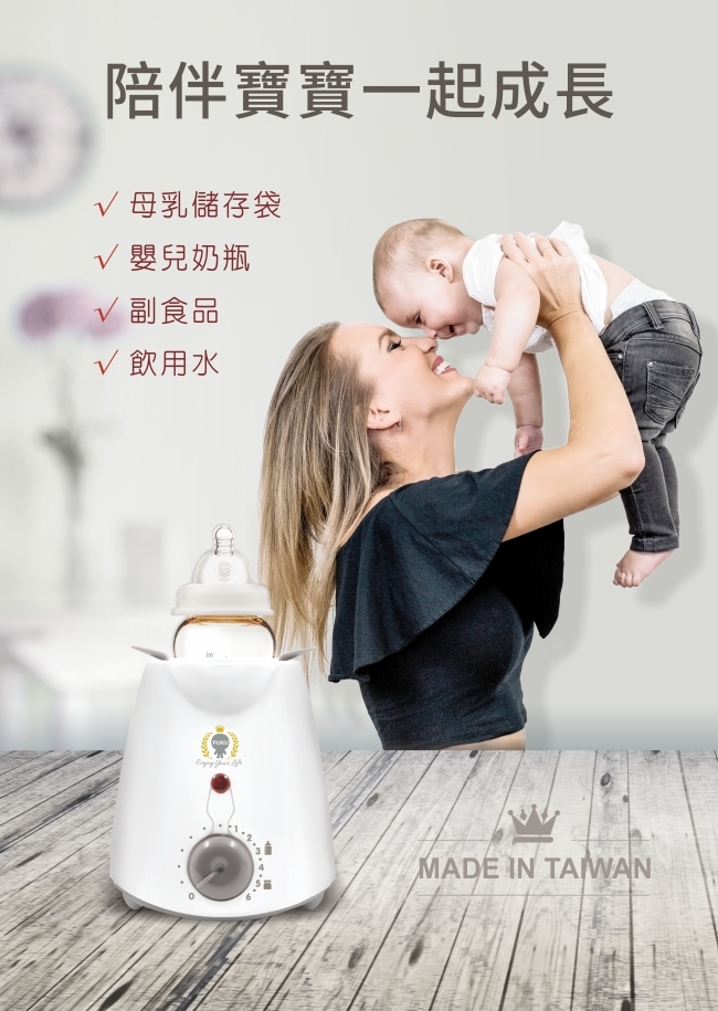 • 可快速加熱母乳、母乳袋、副食品罐頭等