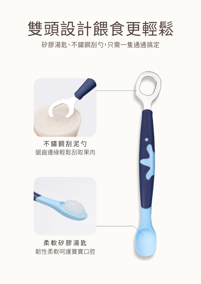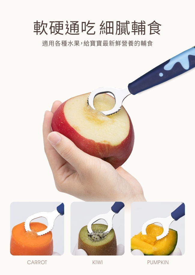 • 304不鏽鋼圓角設計,輕鬆挖取果泥
