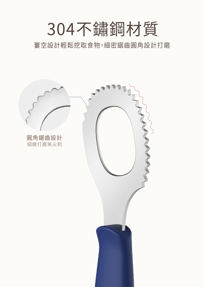 • 鋸齒邊緣設計,輕鬆刮取果泥
