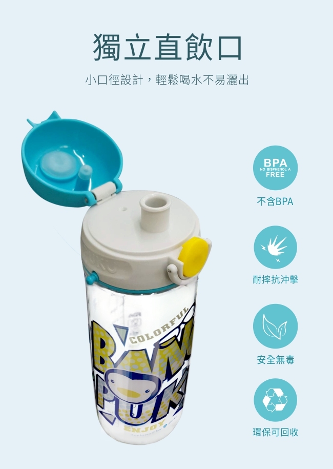商品品名:Tritan直飲水壺330ml-(機器人/彩虹馬/星星黃/旅行綠)
