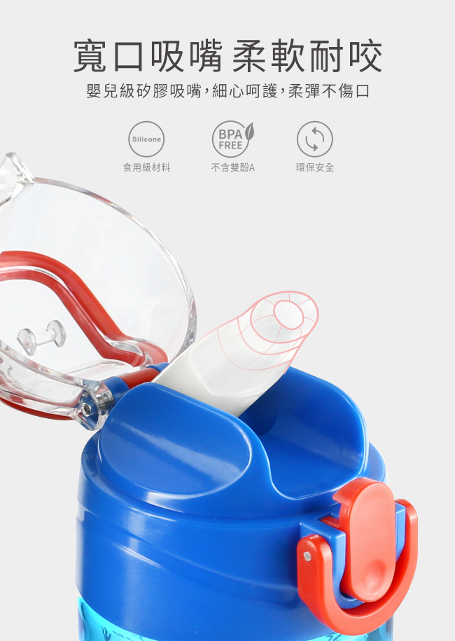 • 嬰兒級矽膠寬口吸嘴,柔軟耐咬
