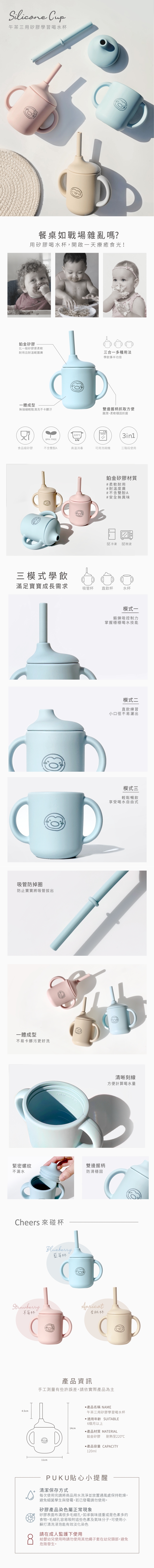 商品品名:午茶三用矽膠吸管學習杯120ml-(三色)