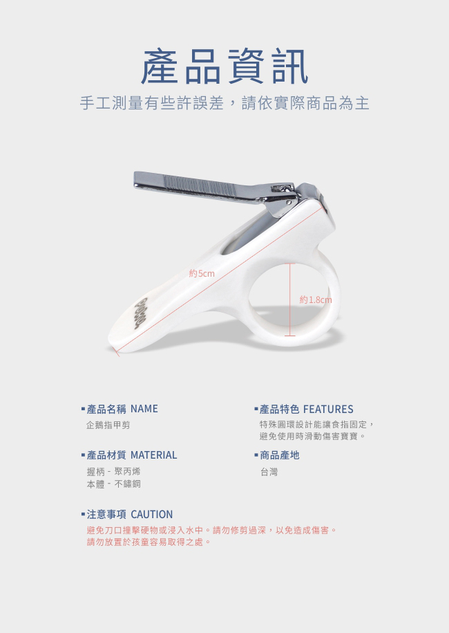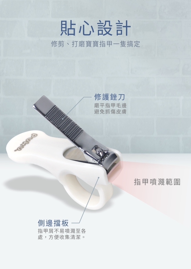 • 指甲屑不易濆濺至各處,安全方便,又衛生