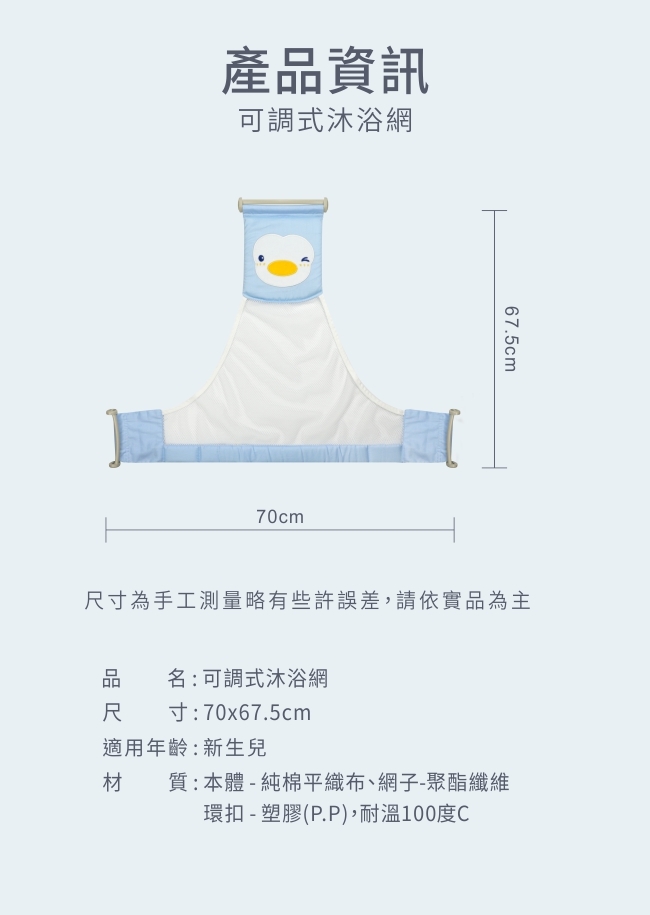 商品品名:可調式沐浴網-水色 商品型號:P17101-299 商品特點: