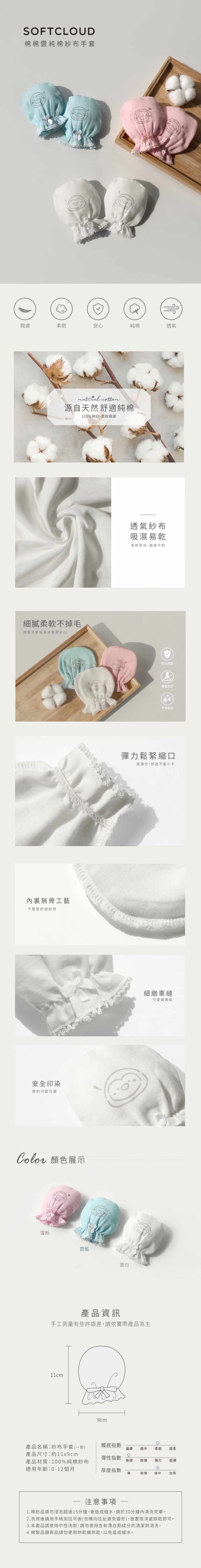 商品品名:SoftCloud棉棉雲紗布手套-(三色)