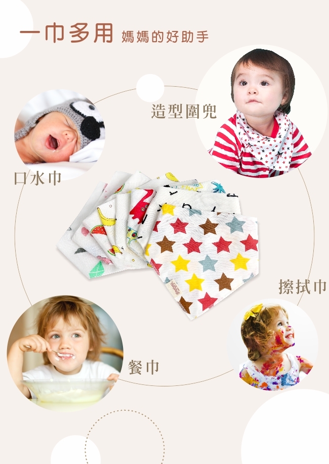 • 一巾多用,圍兜、口水巾、餐巾、擦拭巾
