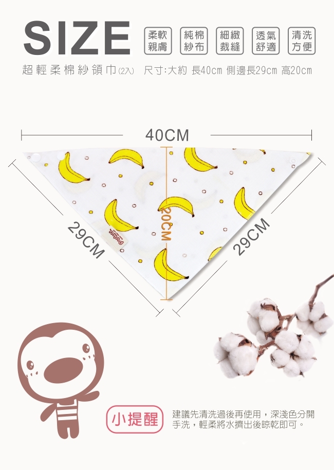 商品品名:超輕柔棉紗領巾2入-40*29*29cm-(四款)