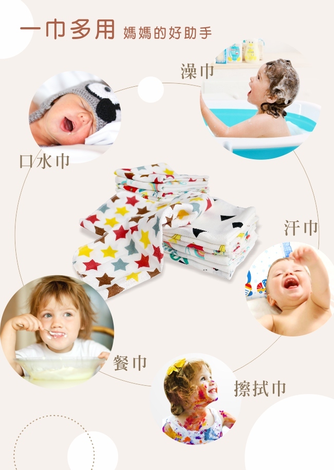 • 多種用途(口水巾/澡巾/擦式巾/汗巾)