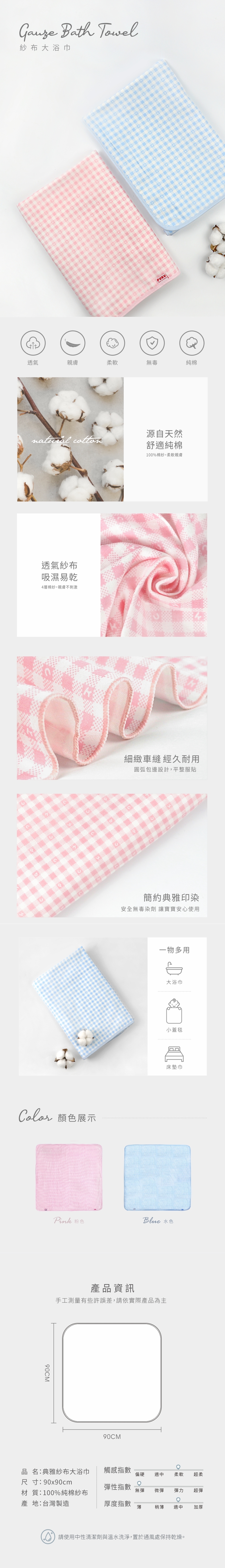 商品品名:典雅紗布大浴巾-90*90cm-(水/粉)