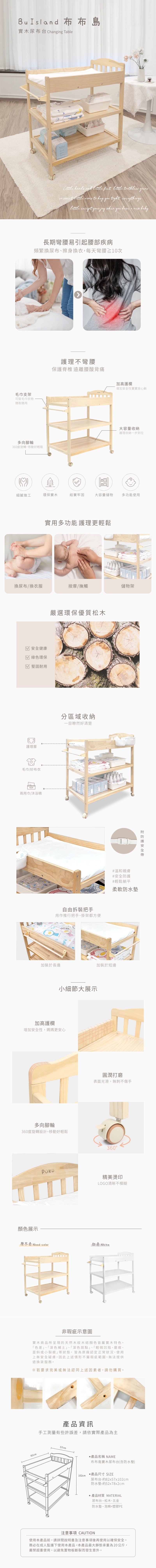 ※請注意,白色尿布台為原木人工上漆,表面和鑽孔會有塗色不均、漆屑剝落等情形,請知悉並可接受再購買,恕不接受上述情形之退換貨請求。