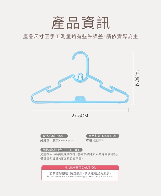 | 商品品名:彩虹糖衣架-12入 商品型號:P30803-899 商品特點: