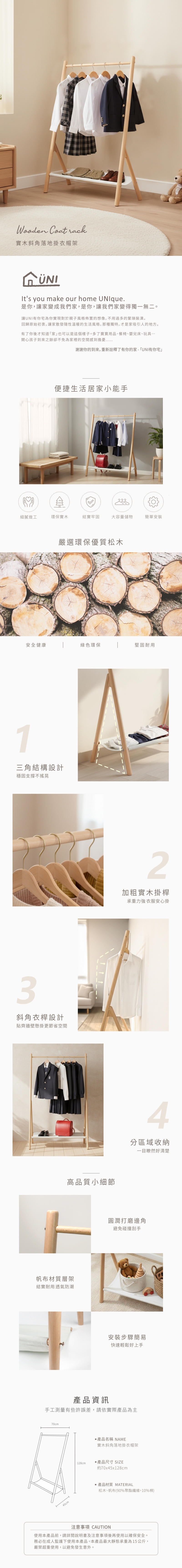 商品品名:「UNI有你宅」實木斜角落地掛衣帽架