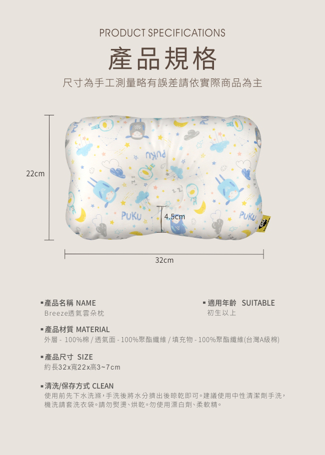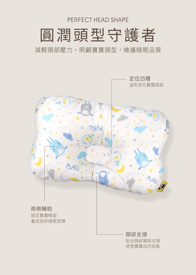 • 護頭型設計,讓寶寶睡出完美頭型!