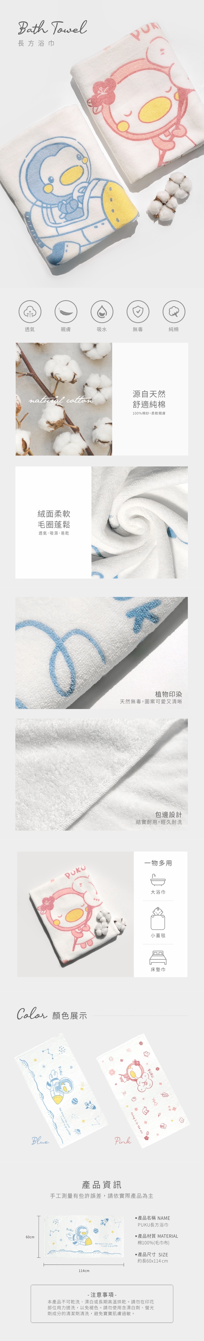 ▪ 安心染長方浴巾60*114cm*1