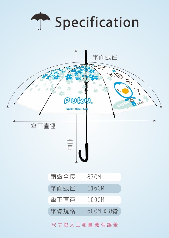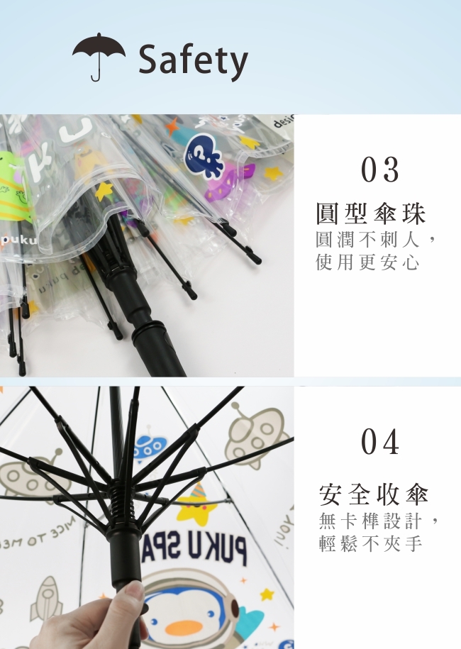 | 商品品名:PUKU直式雨傘-(五款) 商品型號:P40414 商品特點: