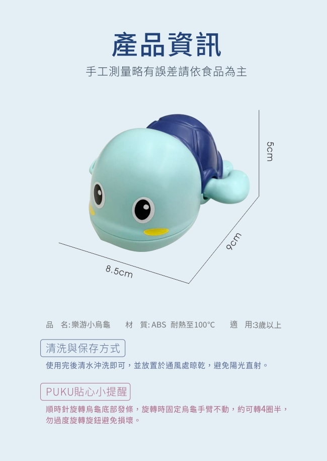 商品品名:樂游小烏龜發條玩具-(三色) 商品型號:P50106 商品特點: