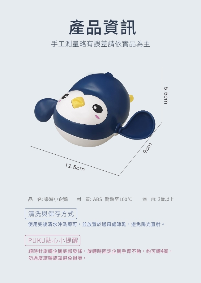 商品品名:樂游小企鵝發條玩具-(三色) 商品型號:P50109 商品特點: