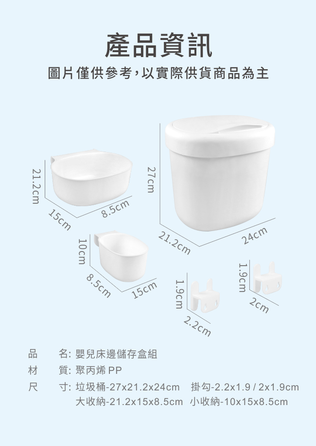 商品尺寸:垃圾桶 - 27x21.2x24cm 掛勾 - 2.2x1.9/2x1.9cm