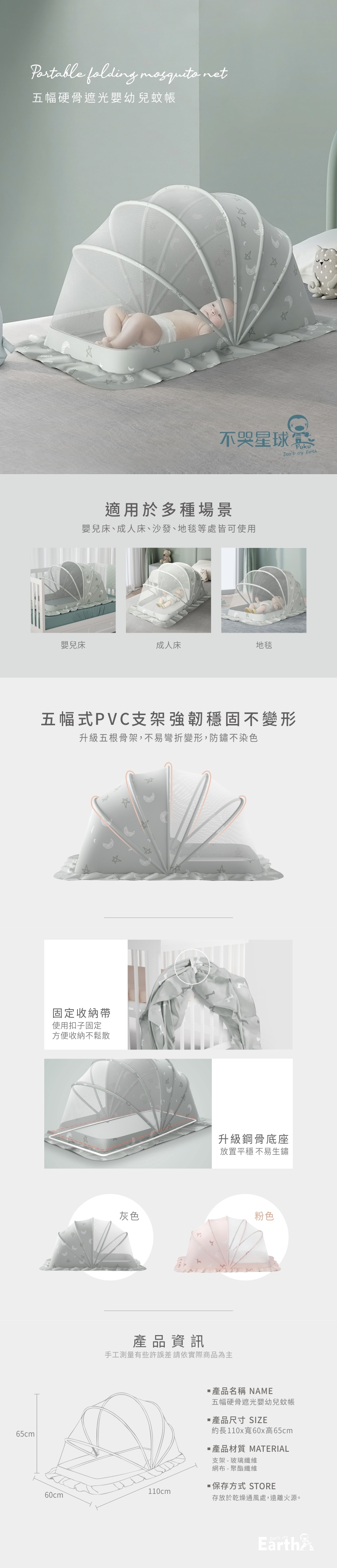 商品名稱:嬰幼兒蚊帳五幅硬骨遮光款-(灰/粉)