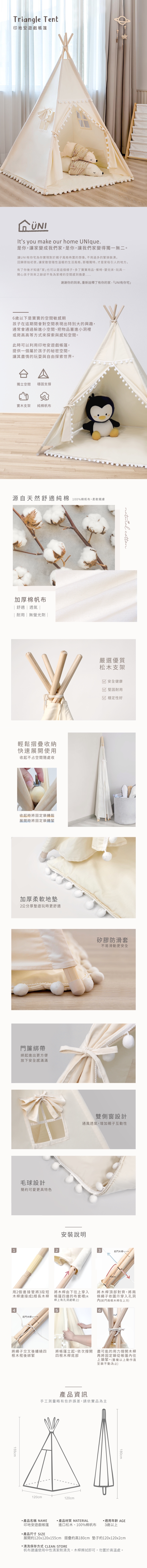 商品品名:「UNI有你宅」印地安遊戲帳篷(含地墊)