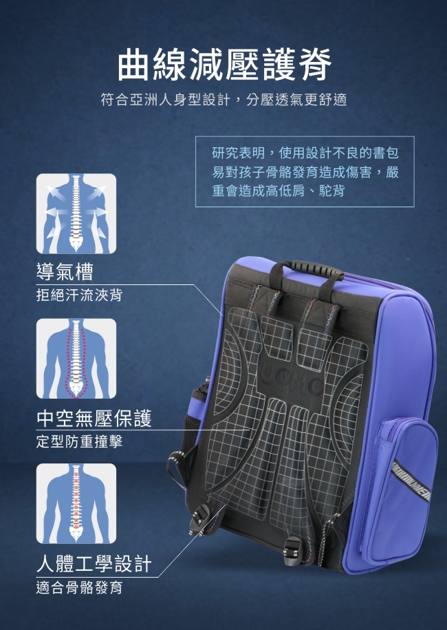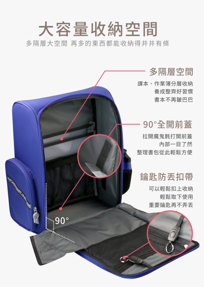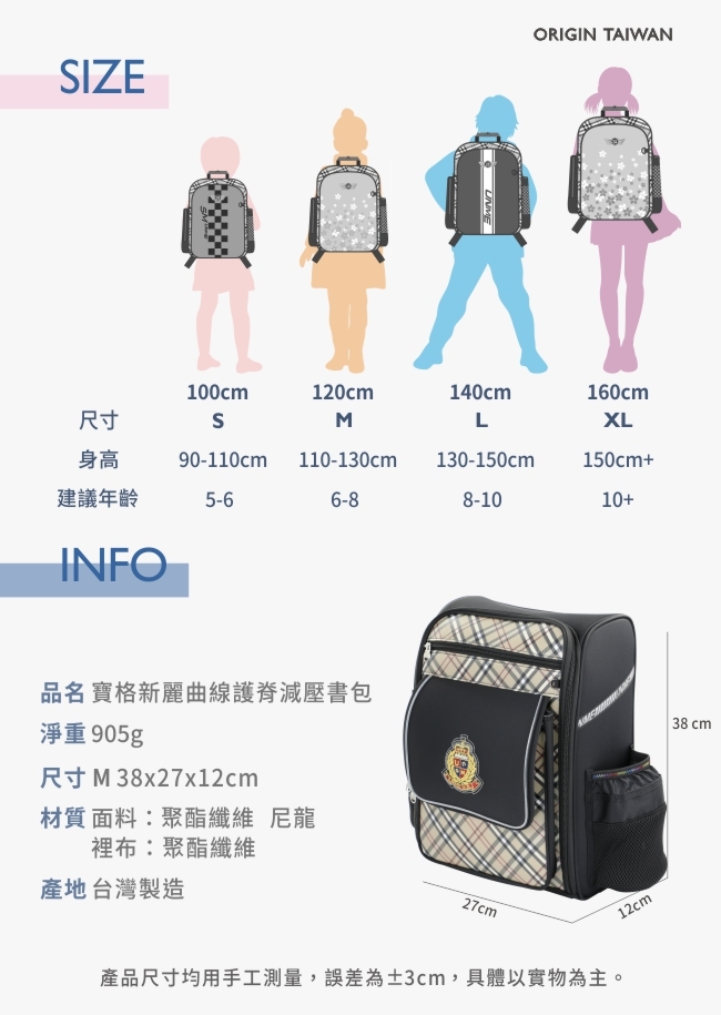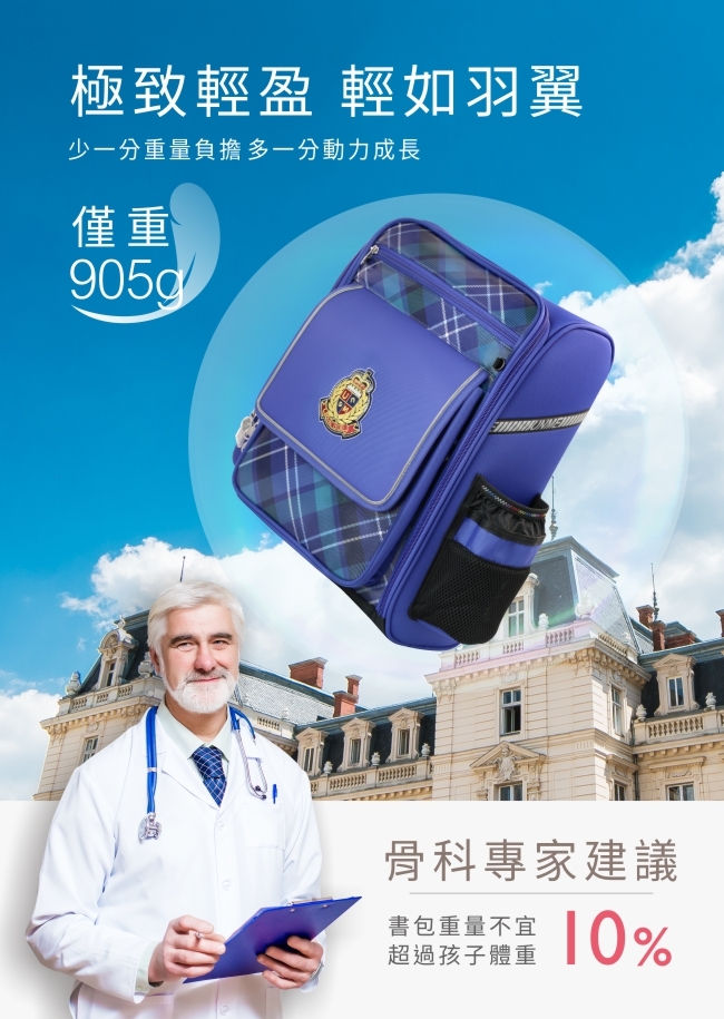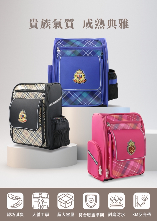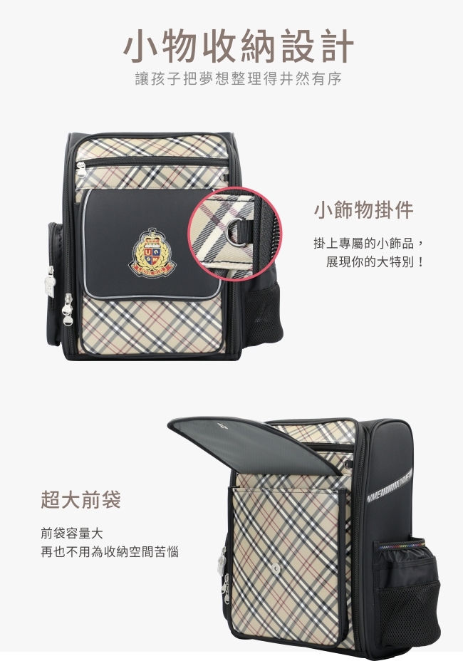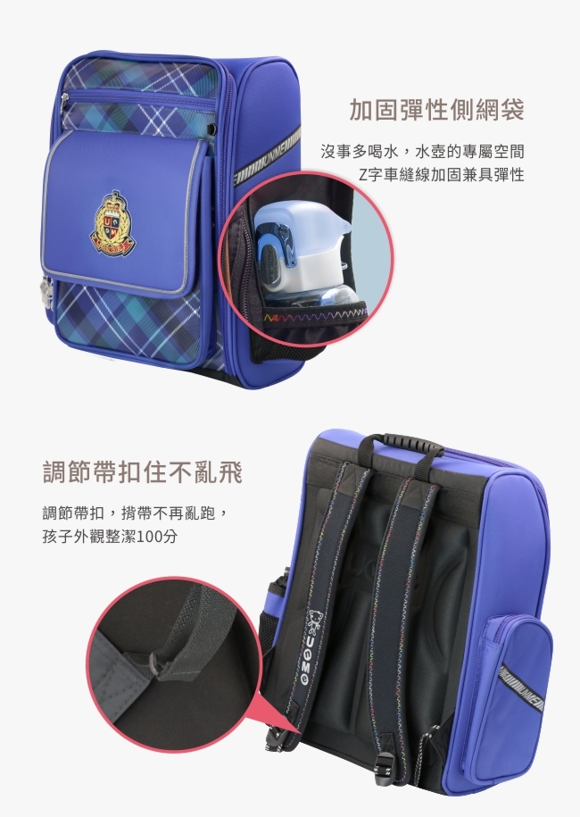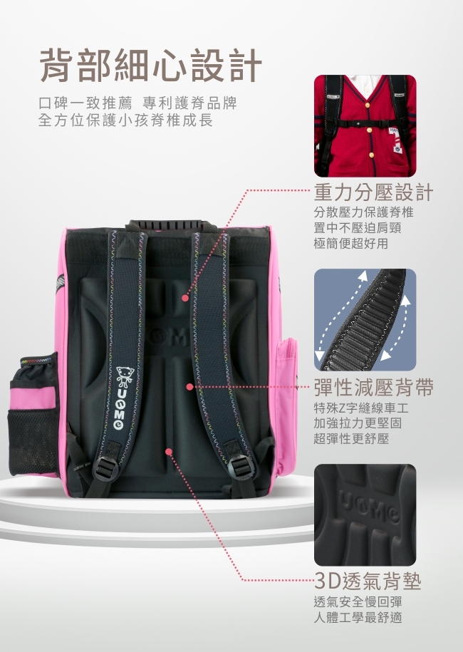 | 商品品名:寶格新麗曲線護脊減壓書包-桃紅格 商品型號:U9612-02 商品特點: