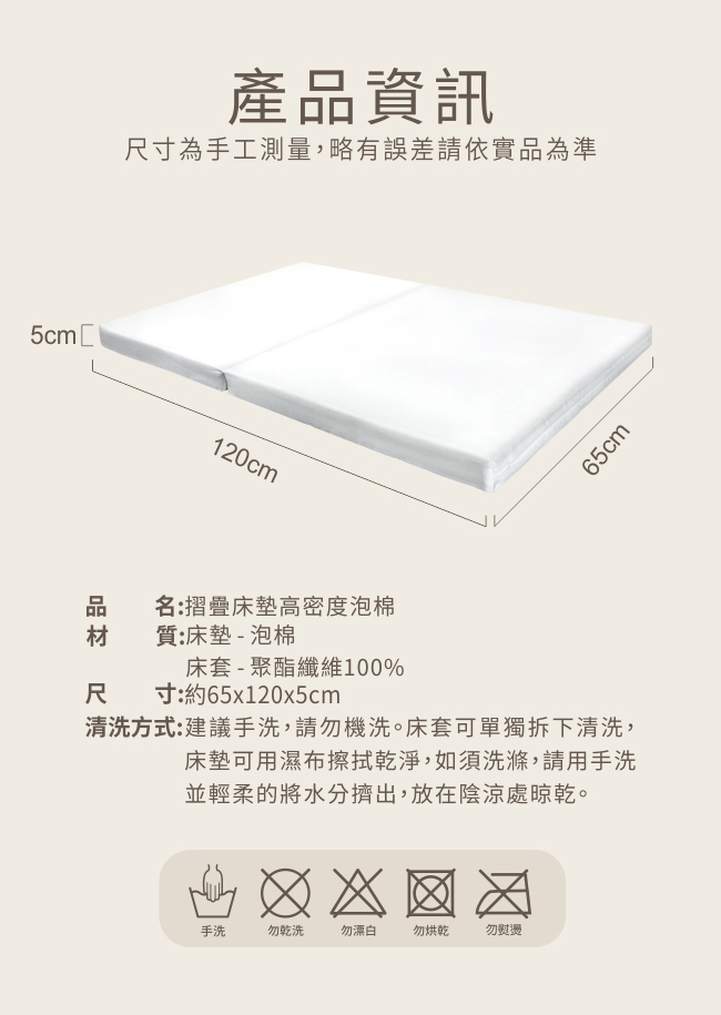 ▪ 高密度泡棉摺疊床墊65*120*5cm*1